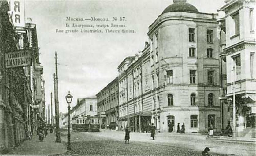 | Keywords: Б Дмитровка от Георгиевского пер Театр Зимина.jpg Вид Б Дмит овки от Гео гиевского пе еулка Теат Зимина http //planetam2006 narod ru/Projekt/OldMoscow/OM001 htm с 1913 author PD-Old PD-RusEmpire Historical images of Bolshaya Dmitrovka Street Moscow Operetta |