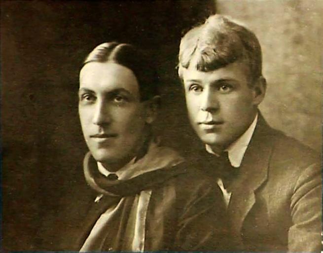 | Keywords: Мариенгоф, Есенин.jpg en Russian poet Sergei Yesenin 1895-1925 on right and Russian poet and writer Anatoly Marienhof on left summer 1919 ru С А Есенин А Б а иенгоф 1919 г лето осква http //www esenin ru/includes/scripts/gallery/index htm Author 1919 thumb left PD-old Sergei Yesenin in photographs Anatoly Marienhof People in 1919 |