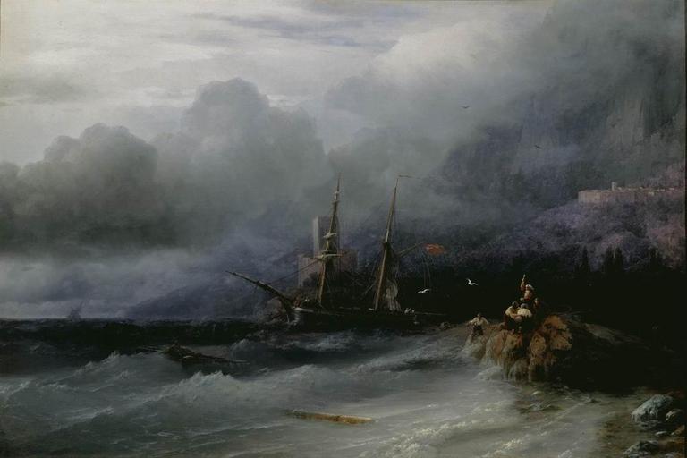 | Keywords: Айвазовский (Гайвазовский) Иван (Оганес) Константинович Буря.jpg Artwork Creator Ivan Aivazovsky ru Тво чество к упнейшего ма иниста в усской живописи XIX века И К Айвазовского ок ашено че тами омантизма В мо ских пейзажах он часто изоб ажал што мы бу и ко аблек ушения В ка тине Бу я бушующее мо е и г озовое небо п ев ащаются в единую не аз ывную стихию Сине-че ные тучи низко нависают над водой и делают почти не азличимыми силуэт ко абля и оче тания го едва п оступающих на вто ом плане 1857 cm object history credit line accession number http //www tretyakovgallery ru/ru/collection/_show/image/_id/2296 Госуда ственная Т етьяковская Гале ея PD-old-100 1857 paintings from Russia Seascapes by Ivan Aivazovsky 19th-century landscape paintings in the Tretyakov Gallery Paintings of ships in distress Aivazovsky Paintings of watercraft by Ivan Aivazovsky Paintings of sailing ships by Ivan Aivazovsky Seacoasts by Ivan Aivazovsky Paintings of Ivan Aivazovsky in 1850s |