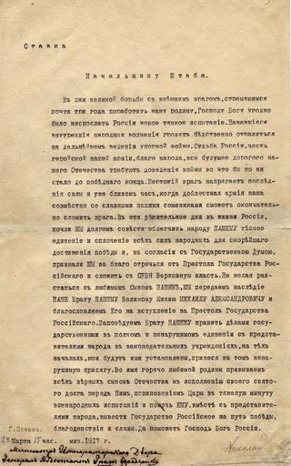 | Keywords: Отречение от престола императора Николая II. 2 марта 1917.jpg От ечение от п естола импе ато а иколая II 2 ма та 1917 ашинопись http //rusarchives ru/evants/exhibitions/1917-myths-kat/34 shtml 1917-03-02 ru иколай Романов PD-OLD; PD-RUSEMPIRE; This image is in the public domain due to its age; PD-TRIVIAL See also File 1917 ма т От ечение иколая II манифест jpg PD-old-70 PD-RusEmpire Original upload log page ru wikipedia D0 9E D1 82 D1 80 D0 B5 D1 87 D0 B5 D0 BD D0 B8 D0 B5_ D0 BE D1 82_ D0 BF D1 80 D0 B5 D1 81 D1 82 D0 BE D0 BB D0 B0_ D0 B8 D0 BC D0 BF D0 B5 D1 80 D0 B0 D1 82 D0 BE D1 80 D0 B0_ D0 9D D0 B8 D0 BA D0 BE D0 BB D0 B0 D1 8F_II _2_ D0 BC D0 B0 D1 80 D1 82 D0 B0_1917 jpg 2007-10-15 11 40 Zip501 600×961× 177314 bytes <nowiki> Изоб ажение Описание От ечение от п естола импе ато а иколая II 2 ма та 1917 ашинопись Авто иколай Романов В емя создани�</nowiki> Nicholas II of Russia's abdication |
