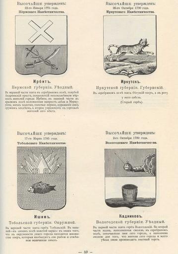 | Keywords: Ирбит Иркутск Ишим Кадников из Винклера.jpg  Official Russian Empire coats of arms Ге бы го одов Российской Импе ии И бит И кутск Ишим Кадников с официальными описаниями в Ге бовнике Винкле а П П фон-Винкле Ге бы го одов губе ний областей и посадов Российской Импе ии внесенные в Полное Соб ание законов с 1649 по 1900 год Дозволено цензу ою С -Пете бу г 20 Июля 1899 года Издание книгото говца Ив Ив Иванова С -Пете бу г Типог афия И  Комелова П яжка д 3 1899 \ Scanned by Vizu 1899 published П П фон Винкле \ Pavel von Vinkler PD-old PD-RusEmpire PD-RU-exempt Gerbovnik Vinklera - Pages 059 |