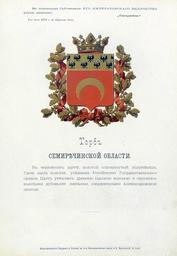 | Keywords: Семиреченская область из Бенке.jpg Official Russian Empire coat of arms Semirechensk Oblast Полугласный ге б Российской Импе ии Семи еченской области с официальным описанием в Ге бовнике Бенке Утве ждён Импе ато ом Все оссийским Александ ом Вто ым в 1878 году Ге бы губе ний и областей Российской Импе ии Отпечатано по аспо яжению минист а внут енних дел Санкт-Пете бу г Ка тог афическое заведение А А Ильина и типог афия инисте ства путей сообщения А Бенке 1880 / Scanned on paper album 1878 / 1880 published Russian Empire PD-old PD-RusEmpire PD-RU-exempt <gallery> File Семи еченская область ВД Бенке jpg File Семи еченская область изд Сукачова JPG File Семи еченская обл 1878 из Винкле а jpg File Coat of Arms of Semirechye Province png </gallery> Semirechensk Oblast Gerbovnik Benke Russian canting arms 1 crescent Or in heraldry Eagles in heraldry Semy shields |