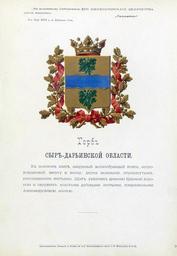 | Keywords: Сырдарьинская область из Бенке.jpg Official Russian Empire coat of arms Syr-Darja Oblast Ге б Российской Импе ии Сы - Да ьинской области с официальным описанием в Ге бовнике Бенке Утве ждён Импе ато ом Все оссийским Александ ом Вто ым в 1878 году Ге бы губе ний и областей Российской Импе ии Отпечатано по аспо яжению минист а внут енних дел Санкт-Пете бу г Ка тог афическое заведение А А Ильина и типог афия инисте ства путей сообщения А Бенке 1880 / Scanned on paper album 1878 / 1880 published Russian Empire PD-old PD-RusEmpire PD-RU-exempt <gallery> File Сы Да ьинская область ВД Бенке jpg File Сы -Да ьинская область изд Сукачова JPG File Сы да ьинская обл 1878 из Винкле а jpg File Syrdarya obl coa png File Ташкент из Винкле а jpg </gallery> Syr-Darja Oblast Vine leaves in heraldry Rivers in heraldry Gerbovnik Benke |