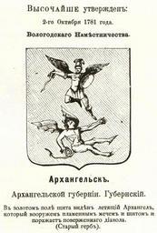 | Keywords: Архангельск из Винклера.jpg Official Russian Empire coat of arms Arkhangelsk Гласный ге б губе нского го ода Российской Импе ии А хангельск с официальным описанием в Ге бовнике Винкле а П П фон-Винкле Ге бы го одов губе ний областей и посадов Российской Импе ии внесенные в Полное Соб ание законов с 1649 по 1900 год Дозволено цензу ою С -Пете бу г 20 Июля 1899 года Издание книгото говца Ив Ив Иванова С -Пете бу г Типог афия И Комелова П яжка д 3 1899 \ Scanned by Vizu 1853 / 1899 published П П фон Винкле \ Pavel von Vinkler PD-old PD-RusEmpire PD-RU-exempt coats of arms Gerbovnik Vinklera - City CoAs Coats of arms of Vologda Governorate Coats of arms of Arkhangelsk Governorate Coats of arms of Arkhangelsk Saint Michael in heraldry Swords in heraldry Russian canting arms |