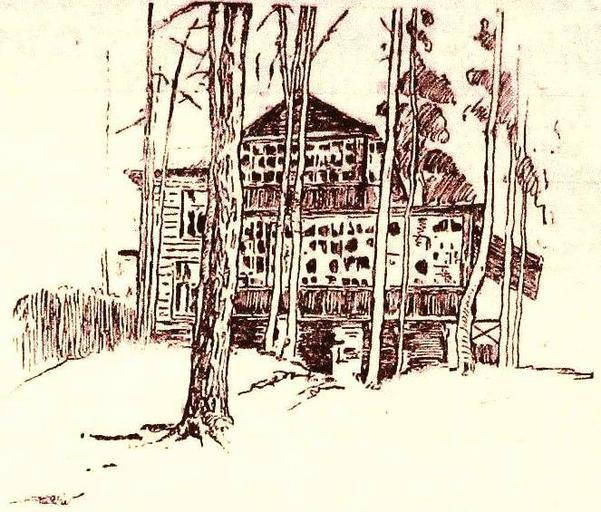 Keywords: Дача Звержинской.jpg ru Дача Зве жинской в кото ой был обна ужен убитый Гео гий Гапон Рисунок неизвестного художника Газета овое в емя 10824 3 мая 1906 года Author 1906-05 Assassination of George Gapon Dachas PD-old