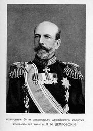 | Keywords: Дембовский Леонид Матвеевич генерал-лейтенант.jpg ru Гене ал-лейтенант Л Дембовский команди 5-го Сиби ского а мейского ко пуса Летопись войны с Японией 14 author date PD-old Generals of the Russian Empire People of the Russo-Japanese War 1838 births People of the Russian Empire 1908 deaths |