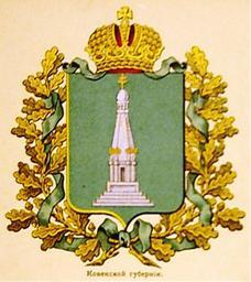 | Keywords: Ковенская губерния изд.Сукачова.jpg Russian Empire coat of arms Kovno Governorate Paper non-post card of Russian Empire Ге б Российской Импе ии Ковенской губе нии издания Сукачова СПб епочтовая ка точка Российской Импе ии Ге бы губе ний и областей Российской Импе ии Санкт-Пете бу г издание В П Сукачова в пользу Общества содействия учащихся в Санкт-Пете бу ге сиби яков ; между 5 июля 1878 и 1881 / Scanned 1878 / 1878-1881 published Russian Empire PD-old-100 PD-RusEmpire PD-RU-exempt coats of arms Gerbovnik Sukachova <gallery> File Ковенская губе ния из Бенке jpg File Ковенская губ ВД Бенке jpg File Kovno_Governorate_COA png </gallery> Coats of arms of Kovno Governorate Kolonnas in art |