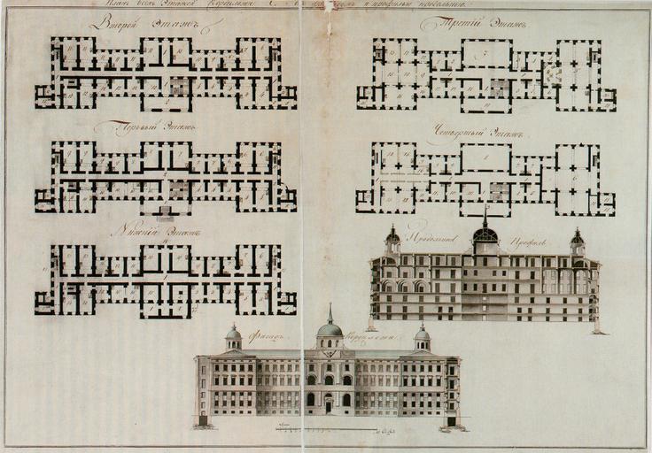 Keywords: Воспитательный дом. Главный корпус. XVIII в.jpg ru Воспитательный дом Главный ко пус Фасад и аз ез Поэтажные планы XVIII век РГАДА РГАДА http //ser02020 ya ru А х Ка л Бланк XVIII в PD-old Moscow Orphanage