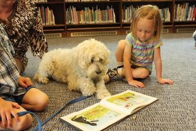 Keywords: Reading with Bailey at Kalamazoo Public Library. dogs public reading library international bailey kalamazoo therapy