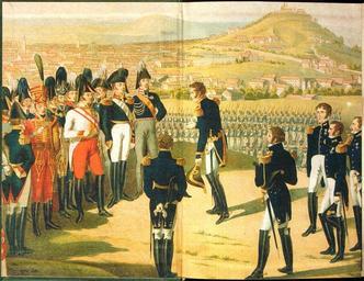 | Keywords: Александр Первый литография.JPG Russian Colorized lithograph The culmination of the reign of Alexander I Marshal Marmont hands over the keys of Paris to the Russian Emperor tsar Alexandre 1st ru Раск ашенная литог афия «Кульминация п авления Александ а I ма шал а мон в учает ключи от Па ижа оссийскому импе ато у» Сп ава ф анцузы слева союзники усские авст ийцы и богемцы Со шляпой в уке наполеоновский в полупоклоне ф анцузский ма шал а мон униженно п осящий победителей о гуманном об ащении с Па ижем Подпись «19-го ма та 1814 г к ыши па ижских п едместий утопали в по оховом дыму Русские и авст ийские колонны п и подде жке батального огня полевой а тилле ии шли на шту м ук еплений онма т а Заба икади овавшись в домах жители Па ижа с сод оганием слушали долетавшее с поля с ажения ужасное у а диких азиатов кото ых на официальных плакатах изоб ажали не иначе как за осшими ше стью чудищами с кинжалами в зубах и ок овавленными учищами Вече ом все было кончено Х аб ые но неумелые защитники Па ижа в беспо ядке отступали оставив в уках победителей онма т ские высоты на кото ые пе выми во вались усские г енаде ы Ба клая более тысячи пленных и 126 о удий К овавые поте и сто он в тот день были велики 4 тыс у ф анцузов и 8 400 чел - у союзников а закате аненый ма шал а мон п ибыл в ставку наблюдавшего за шту мом импе ато а Александ а I и в учил ему ключи от го ода со словами Си умоляю вас пощадить Па иж Па иж сдавался без условий» fr Apogée du règne du tsar Alexandre 1er de Russie le maréchal Marmont lui remet les clés de Paris <br> Le 19 Mars 1814 les toits de la banlieue parisienne disparaissent dans la fumée des canons Des colonnes russes et autrichiennes progressent avec le soutien de l'artillerie vers les fortifications de Montmartre où se sont barricadés des habitants de Paris Dans la soirée tout était fini Braves mais inexpérimentés les défenseurs se replient en désordre laissant entre les mains des vainqueurs plus d'un millier de prisonniers et 126 canons Les pertes ont été importantes 4 000 Français et de 8 400 alliés Le maréchal Marmont blessé remet à Alexandre 1er les clés de la ville avec ces mots Sire je vous prie d'épargner Paris Paris se rendit sans conditions Александ А хангельский Александ I Ваг иус 2000 пе евод на ф анцузский Alexandre 1-er Le feu follet Paris Fayard 2000 / own photo unk в источнике не указан 1814 PD-old-100 PD-RusEmpire Alexander I of Russia in documentary paintings Auguste de Marmont Remote views of Montmartre 1814 Historical images of Basilique du Sacré-Cœur de Montmartre 1814 War of the Sixth Coalition 1814 in Paris Le Feu Follet |