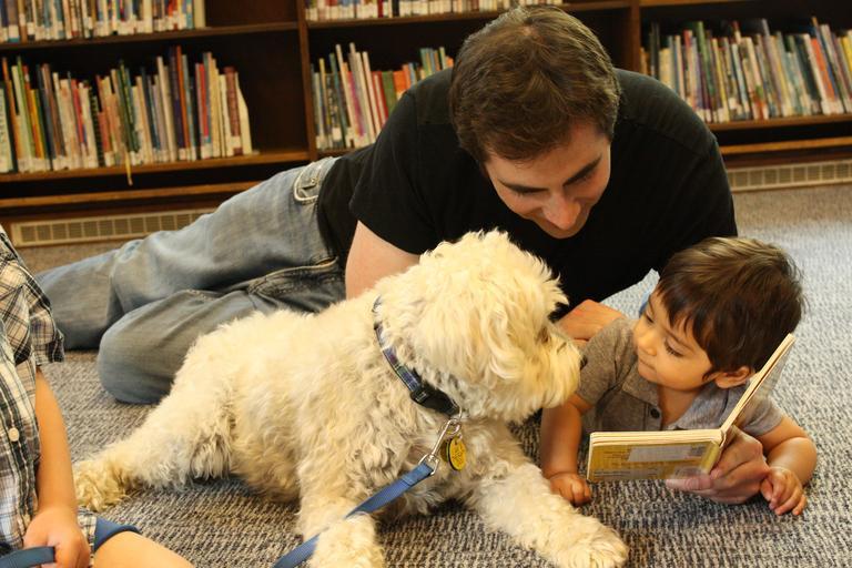 Keywords: Reading with Bailey at Kalamazoo Public Library. dogs public reading library international bailey kalamazoo therapy