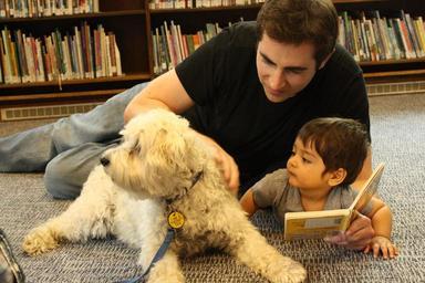 Keywords: Reading with Bailey at Kalamazoo Public Library. dogs public reading library international bailey kalamazoo therapy
