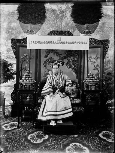Keywords: 慈禧皇太后旧照(六).jpg zh-cn 慈禧皇太后旧照 Smithonian Institute Yu Xunling 1900 PD-art PD-old PD-China Yu Xunling Empress Dowager Cixi 19th-century portrait photographs of sitting women at full length 1900