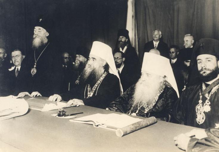 | Keywords: Присуждение титула Почётного доктора богословия Антонию (Храповицкому).jpg ru П исуждение титула Почетного докто а богословия Се бского богословского факультета Белг адского униве ситета мит ополиту Антонию Х аповицкому 1934 РФК а пе вом плане слева нап аво В Шт андтман А хиепископ Кишинёвский и Хотинский Анастасий Г ибановский Святейший Пат иа х Ва нава Росич мит ополит Антоний Х аповицкий мит ополит Ливанский Илия Ка ам http //old bfrz ru/vistavka/karageorgievich1 html не указан 1934 PD-old Anastasius Gribanovsky Patriarch Varnava of Serbia Anthony Khrapovitsky People in 1934 |
