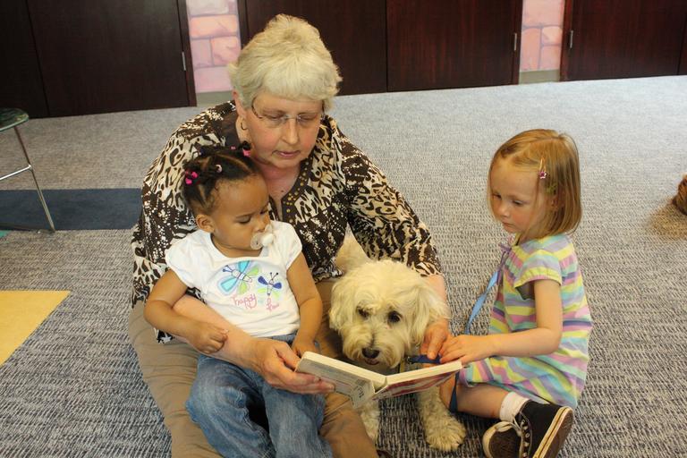Keywords: Reading with Bailey at Kalamazoo Public Library. dogs public reading library international bailey kalamazoo therapy