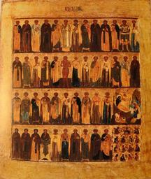Keywords: Минейная икона из церкви Димитрия Прилуцкого.JPG ru Икона из це кви Димит ия П илуцкого на аволоке в Вологде Рыбаков А А Вологодская икона Цент ы художественной культу ы земли Вологодской ХIII XVIII веков author XVI в PD-old Icons of Vologda Church of Dimitry Prilutsky na Navoloke Menaion calendar icons