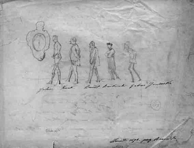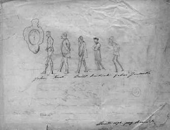 | Keywords: Юзеф Брандт. Рисунок зі Славути.png uk Силуети Юльця Дзедушицького 1817-1885 Юзефа Б андта Бєньковського Ґабуся Яво ського і Юліуша Коссака під час відвідин Славути Рисунок олівцем а хів Creator Józef Brandt 1872 PD-old-auto 1915 Józef Brandt Sanguszko Palace Slavuta |