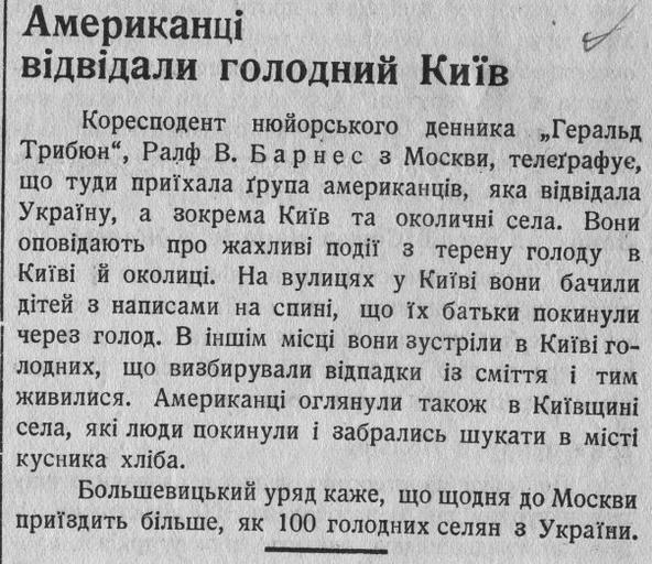 | Keywords: Американці відвідали голодний Київ.jpg  uk  ате іали д укованої п еси науково-довідкової бібліотеки де жавного а хіву Че нівецької області які висвітлюють події Голодомо у на Ук аїні 1932  1933  оків Газета Час 4 жовтня 1932   1142 с 3 Author 1932 Holodomor 1932 newspapers PD-old Funds of state archive of Chernivtsi Oblast |