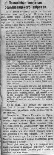 | Keywords: Помагаймо жертвам большевицького звірства.jpg  uk  ате іали д укованої п еси науково-довідкової бібліотеки де жавного а хіву Че нівецької області які висвітлюють події Голодомо у на Ук аїні 1932  1933  оків Газета  а одна сила 22 т авня 1932   18 с 1 Author 1932 Holodomor Newspapers of Ukraine 1932 PD-old Funds of state archive of Chernivtsi Oblast |