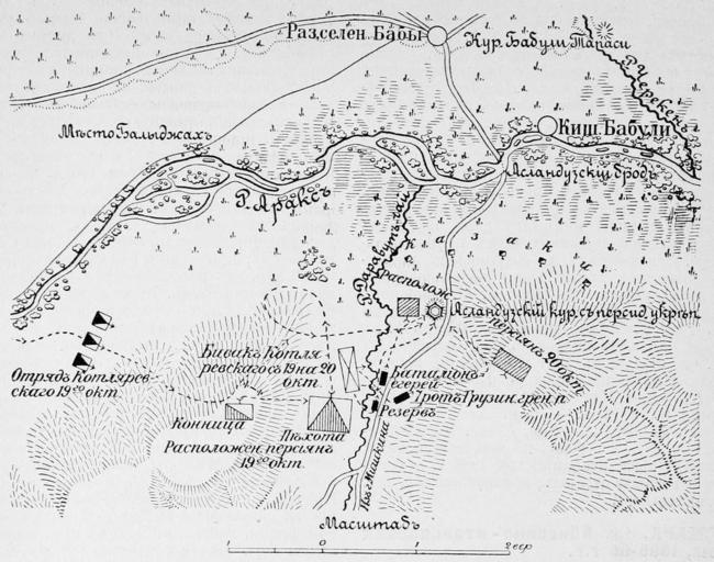 Keywords: Схема боя у Асландуза.jpg ru Схема боя у Асландуза 2011-12-03 Военная энциклопедия Том-III author PD-old-100 Battle of Aslanduz Military Map of the Russian Empire