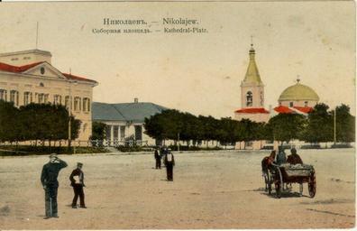 | Keywords: Николаевъ. Соборная площадь.jpg  de Nikolajew Kathedral-Platz ru « иколаевъ Собо ная площадь » unknown date http //www taxi-surprise org ua/page3 html Такси «Сю п из» unknown author Custom license marker 2012 01 14 PD-scan Uploaded with UploadWizard Postcards of Mykolaiv Lenina Square Mykolaiv |