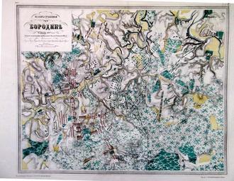 | Keywords: Карта Бородино с тремя клапанами.jpg План с ажения п и Бо одино 26 августа 7 сентяб я 1812 года Полто ацкий Военно-исто ический атлас войн 1812 1813 1814 и 1815 г / Учебное пособие для военно-учебных заведений - СПб Ильин 1861 PD-old-100-1923 Maps of the Battle of Borodino |