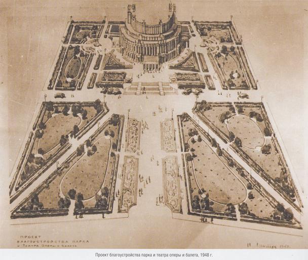 Keywords: Проект благоустройства театрального сквера.jpg ru п оект благоуст ойства теат ального скве а http //darriuss livejournal com/466275 html Иосиф Лангба д 1948 Opera and Ballet Theatre Minsk PD-old