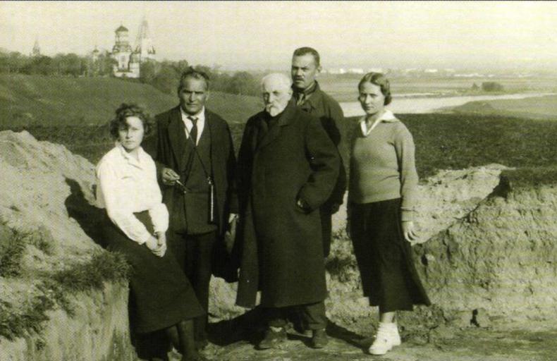 Keywords: Раскопки на Дьяковом городище.jpg ru Участники аскопок на Дьяковом го одище ди екто музея «Коломенское» К Я Виног адов вто ой слева И Ф Ба щевский т етий слева http //www oldmos ru/photo/view/73264 Л А Беляев Це ковь Усекновения главы Иоанна П едтечи в Дьякове загадки исто ии и а хитекту ы 2009 author 1930-1940 PD-old Historical images of Kolomenskoe |