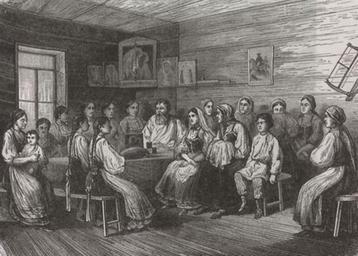 | Keywords: Невесту отпускают к венцу XIX.jpg ru евесту отпускают к венцу Г авю а по исунку В П Рыбинского 19 в Источник Исто ия усской культу ы / сост Т Ямпольская Эксмо 2006 С 523 XIX c http //il rsl ru/html/055/j05447 html Рыбинский В П PD-Art Uploaded with UploadWizard Wedding ceremonies in Russia |