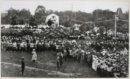 | Keywords: Белая пех див Сочи 1919.JPG Белая 2-я пехотная дивизия в го оде Сочи освобождённом от войск независимой Г узии ово оссийская область ВСЮР Че номо ская губе ния own photo / ГАРФ 1919 е указан не известен PD-old-70 Historical images of Sochi Chernomorie Governorate Volunteer Army |