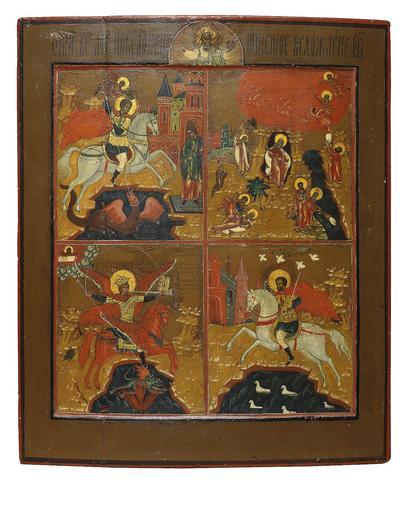 | Keywords: Св Георгий пророк Илия архангел Михаил и мчн Трифон.jpeg  de Vierfelderikone Hl Georg Prophet Elias Erzengel Michael und Hl Tryphon Kirchenslawischer Titulus Nordrussland/Altgläubigenatelier um 1800 54 x 45 8 cm ru Свв Гео гий п о ок Илия а хангел  ихаил и мчн Т ифон Русский Севе ок 1800 Де ево левкас темпе а масло 54 x 45 8 см Частное соб ание 1800 http //www cirota ru/forum/view php subj 80421 fullview 1 order asc user_id 6624 show_all 1 author Custom license marker 2012 12 05 PD-art-100 Uploaded with UploadWizard Icons of Elijah Icons of Elijah's ascension Icons of Saint George and the Dragon 1800 Icons of Saint Michael horseman Icons of Saint Tryphon Multiple-images icons Icons of Russian North |