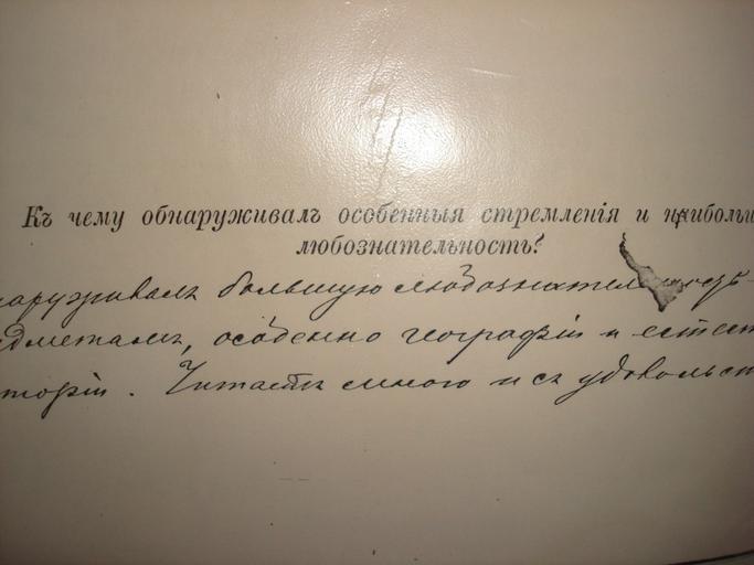 | Keywords: Кондуит Всеволода Вишневского.jpg ru Выписка из гимназического кондуита Всеволода Витальевича Вишневского обучавшегося в 1-ой Санкт-Пете бу гской гимназии с 1909 по 1912 год 1909 1912 School's Museum collection 321 School St Petersburg The address of museum 191119 Russia Saint-Petersburg Socialisticheskaya St 7 / Pravdy St 11 phone +7 812 764-86-38 e-mail sch321 center-edu/spb/ru The First Saint-Petersburg Gymnasium St Petersburg Russia PD-1923 PD-old-70-1923 Uploaded with UploadWizard School certificates The First Saint-Petersburg Gymnasium St Petersburg Russia Vsevolod Vishnevsky |