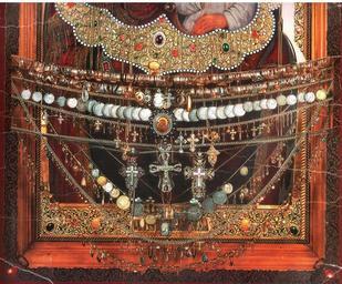 | Keywords: Святогорская икона ниж.часть.jpg Об азъ П есвятыя Бого одицы Святого ския Святого ская чудотво ная икона Пе ед иконой находятся к есты ук ашения и монеты Российской Импе ии в основном ца ствования иколая Вто ого - да излечившихся людей Большая цветная х омолитог афия на ка тоне нижняя часть Paper reproductuion 1896-1917 end 1840s icon \ early 20 c reproduction - before 1917 Unk PD-RusEmpire PD-art-100 <gallery>File Святого ская икона лики jpg</gallery> Sviatogorsk Icon Nicholas II of Russia on coins Coins of the Russian Empire Ex voto Unidentified year in Kharkiv |