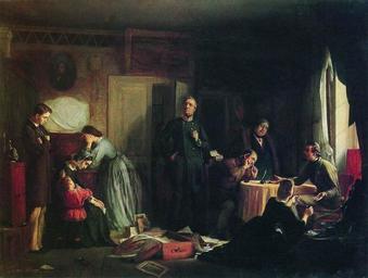 | Keywords: Кредитор описывает имущество вдовы.jpg  ru К едито описывает имущество вдовы Жан жан овая сцена  ап авление Реализм Год 1862 Тип объекта Ка тина  естонахождение  ациональный художественный музей Республики Бела усь  инск  ате иалы холст масло Разме ы 84 х 111 см 1862 http //vsdn ru/museum/catalogue/exhibit9485 htm Creator Firs Zhuravlev Custom license marker 2013 03 29 PD-old-100 Uploaded with UploadWizard 1862 paintings from Russia 19th-century paintings in the National Arts Museum of the Republic of Belarus Firs Zhuravlev |