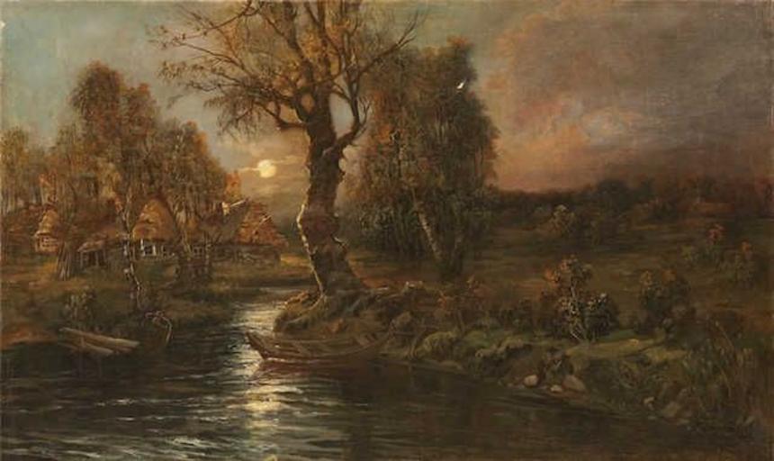 Keywords: Семен Ф. Федоровъ - Пейзаж с рекой в вечернем.jpg Artwork langSwitch Semyon Fedorovitch Fedorov Semjon Fedorowitsch Fedorow Семен Федо ович Федо овъ 1867 - 1910 late other date century 19 - early other date century 20 oil canvas cm 71 114 5 object history exhibition history credit line С Θедо овъ ~ signature accession number http //www lot-tissimo com/de/i/6523701/p/5/ Russian Seasons Saint-Petersburg via Lottissimo PD-old-auto-1923 1910 DEFAULTSORT Fedorov Semyon Semyon Fedorov Landscape paintings from Russia 1900s landscape paintings
