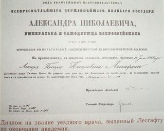 Keywords: Лесгафт диплом врача.jpg ru Диплом лека я Лесгафта П П фонды Российской национальной библиотеки уме более 70 лет назад before 1900 года PD-old Peter Lesgaft