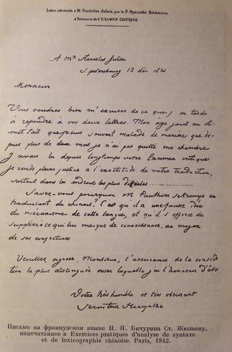 | Keywords: Иакинф Жюльену.JPG  ru Автог аф письма 17 декаб я 1841 года ад есованного С Жюльену Восп оизведён в книге Exercices pratiques d analyse de syntaxe et de lexicographie chinoise 1841-12-17  Я Бичу ин Иакинф Соб ание сведений о на одах обитавших в с едней Азии в д евние в емена  Л 1950 Т 1 С XVII  Я Бичу ин PD-Old-100 Uploaded with UploadWizard Nikita Bichurin |