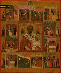 | Keywords: СВЯТИТЕЛЬ НИКОЛАЙ ЧУДОТВОРЕЦ, С ЖИТИЕМ И ИЗБРАННЫМИ СВЯТЫМИ.jpg ru Конец XVIII века Де ево темпе а; 58 х 49 Инв ЯХ И-763 П оисхождение не установлено Поступила в 1970 году Рестав и овалась в 2002 году А Клячиной 2013-09-04 16 52 43 http //www artmuseum by/flash/VirtualVistavka_Ikoni_loder html author Custom license marker 2013 09 04 PD-Art Uploaded with UploadWizard Icons of Saint Nicholas from Russia Saint Nicholas hagiography icons Icons in Yaroslavl Art Museum Exhibition Patron saints in the Orthodox iconography 16-19th centuries |
