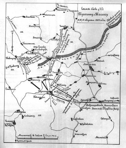 | Keywords: Схема боёв у д.д. Тунсинпу и Тасигоу 11, 12, 13 августа 1904.jpg en Battles scheme at the villages Tunsinpu and Tasigo in August 11 12 13 1904 from the book Memories of Russo-Japanese War 1904-1905 of K Druzhinin К Д ужинин «Воспоминанія о Русско-Японской войнѣ 1904-1905 г г » Санкт-Пете бу г Русская Ско опечатня 1909 Konstantin I Druzhinin 1909 PD-RussianEmpire PD-old-70-1923 Maps of the Russo-Japanese War Konstantin I Druzhinin Files uploaded by Vadim Mogiltchak | ||||