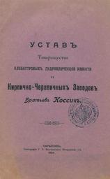| Keywords: Устав Товарищества алебастровых, гидравлической извести и Кирпично-Черепичных Заводов Братьев Коссичъ Харьков 1904.jpg ru Титульная ст аница 1904 http //dlib rsl ru/viewer/01003725177 page 1 РГБ PD-old Uploaded with UploadWizard Исто ия го ода Ха ькова за 250 лет его существования |