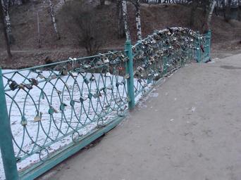 Keywords: Замки на мостике в Кремлевском саду в Вологде.JPG ru Замки на мостике в К емлевском саду в Вологде own Georg Pik 2009-12-11 Bridges in Vologda Love padlocks in Russia