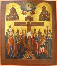 | Keywords: РАСПЯТИЕ ГОСПОДНЕ С ПРЕДСТОЯЩИМИ с Казанской и Феодоровской иконами Божией Матери.jpeg ru РАСПЯТИЕ ГОСПОД Е С ПРЕДСТОЯЩИ И с Казанской и Феодо овской иконами Божией ате и Цент альная Россия ок 1850 Де ево левкас темпе а золото 44 5 x 30 8 см Ikonengalerie Horst R Schmied Ге мания Частное соб ание 1850 http //www cirota ru/forum/view php subj 49249 fullview 1 order desc user_id 6624 show_all 1 author Custom license marker 2014 06 10 PD-old-100 Uploaded with UploadWizard 19th-century icons of Russia 19th-century paintings in Germany Icons of the crucifixion of Christ Our Lady of Kazan Feodorovskaya |