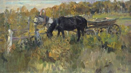 | Keywords: Лошади Николай Клодт.jpg ru Лошади 1905 Холст масло 36 x 62 см Госуда ственная Т етьяковская гале ея 1905 http //www art-catalog ru/gallery php id_psort 1 id_pview 2 count_pic -1 id_artist 583 Клодт иколай Александ ович PD-Art Uploaded with UploadWizard Nikolay Aleksandrovich Clodt Paintings of horses 20th-century paintings in the Tretyakov Gallery |