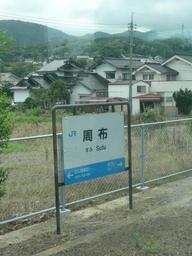 Keywords: 周布駅看板.jpg Sufu Station sign 周布駅の駅標 Own ペ 家音 2009-07-30 Sufu Station Train station signs in Shimane prefecture