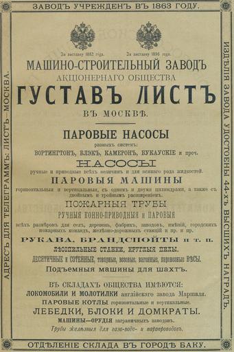 | Keywords: Реклама завода АО Густав Лист, 1899.jpg ru Реклама завода АО Густав Лист 1899 год 2014-10-06 04 49 50 Весь Пете бу г на 1899 год Ад есная и сп авочная книга г С Пете бу га Издание А С Суво ина С 7 екламного блока Скани ование Владими Васильев other versions PD-old-70-1923 Uploaded with UploadWizard Advertisements in Russia 1900s advertisements ашиност оение |
