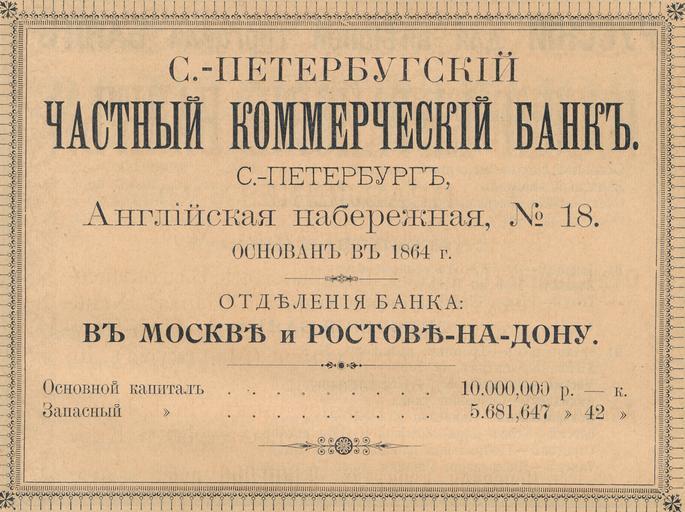 | Keywords: Реклама Санкт-Петербургского частного коммерческого банка, 1899.jpg  ru Реклама Санкт-Пете бу гского частного комме ческого банка сп авочник Весь Пете бу г 1899 год 2014-11-30 13 52 43 авто заглавие Весь Пете бу г на 1899 год ад есная и сп авочная книга г С -Пете бу га ответственный ссылка место Пет ог ад издательство А С Суво ина год 1899 том ст аниц ст аницы 45  екламного блока 5-94030-052-9 Скани ование Владими Васильев other versions PD-old-70-1923 Uploaded with UploadWizard Advertisements in Russia Banks in Russian Empire |