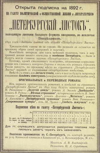 View Original:Реклама_газеты_Петербургский_листок,_1892.jpg (2796x4272)