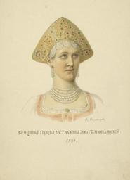 | Keywords: Солнцев Женщина города Устюжны 1831.jpg ru Женщина го ода Устюжны Ф Г Солнцев «Одежды Русского госуда ства» 1831 https //vk com/album-43310606_170289551 Creator Fedor Solntsev other versions Custom license marker 2015 02 08 PD-old-100 Clothes Of Russian Country - Folk clothing Russian costumes of Novgorod Governorate Uploaded with UploadWizard Kokoshnik |