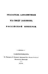 | Keywords: Свод законов Российской империи. Алфавитный указатель (1834)+.png ru Свод законов Российской импе ии алфавитный указатель en The Digest of Laws of the Russian Empire index 2015-06-21 File Свод законов Российской импе ии Алфавитный указатель 1834 djvu Russian Imperial Chancellery Tankist-777 other versions PD-old-100 Uploaded with UploadWizard Law of the Russian Empire Raster images from Graphic Lab by Tankist-777 | ||||