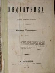 | Keywords: Педиятрика С. Ф. Хотовицкого.jpg ru Титульный лист уководства п офессо а Степана Фомича Хотовицкого Педият ика Собственный а хив Файл с изоб ажением титульного листа книги изданной в 1847 году author 1847 Russian dictionaries Stepan Khotovitsky PD-old |